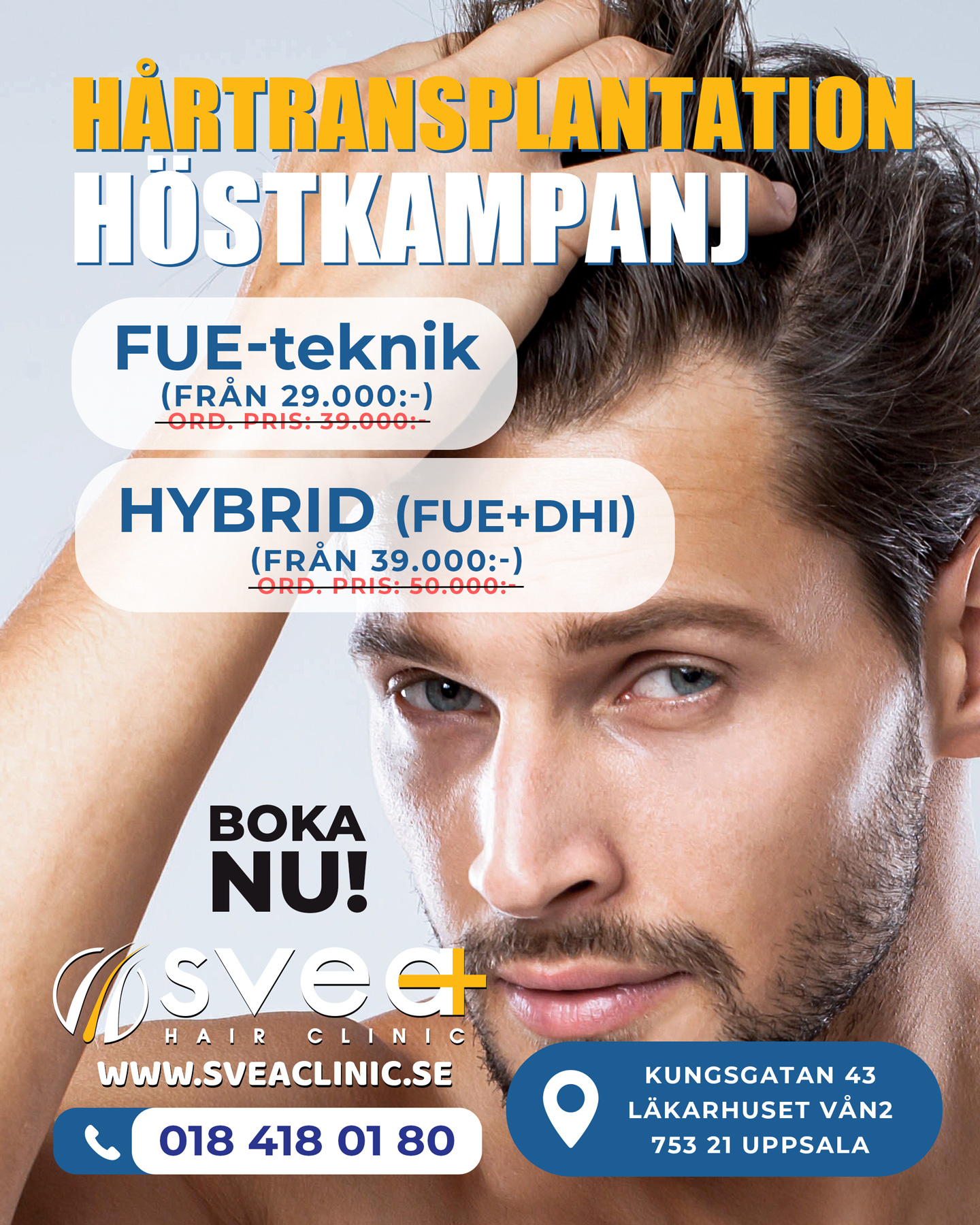Konsultationen sker i Sverige via Svea hair clinic,online eller i kliniken i Uppsala.